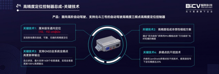 bicv出身北斗体系,北斗星通集团多年积累的自有芯片、高精度云服务、卫导/惯导模组以及天线业务为bicv相关产品研发深度赋能,并可根据汽车不同场景需求进行差异化定制。积极通过北斗车载高精度融合定位为智能驾驶赋能。基于“卫星定位 惯导 高精度地图”的高精度融合定位能力,过去两年里bicv相继推出了组合导航控制器、高精度地图定位控制器、高精度融合定位总成等多种不同的高精度定位相关产品。